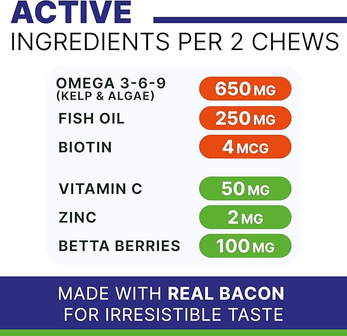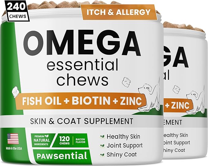Omega 3 for Dogs - for Dry Itchy Skin - Fish Oil Chews - Skin & Coat Supplement - Itch Relief, Allergy, Anti Shedding, Hot Spots Treatment - w/EPA & DHA - Vitamins - Made in USA - Bacon - 240 Treats