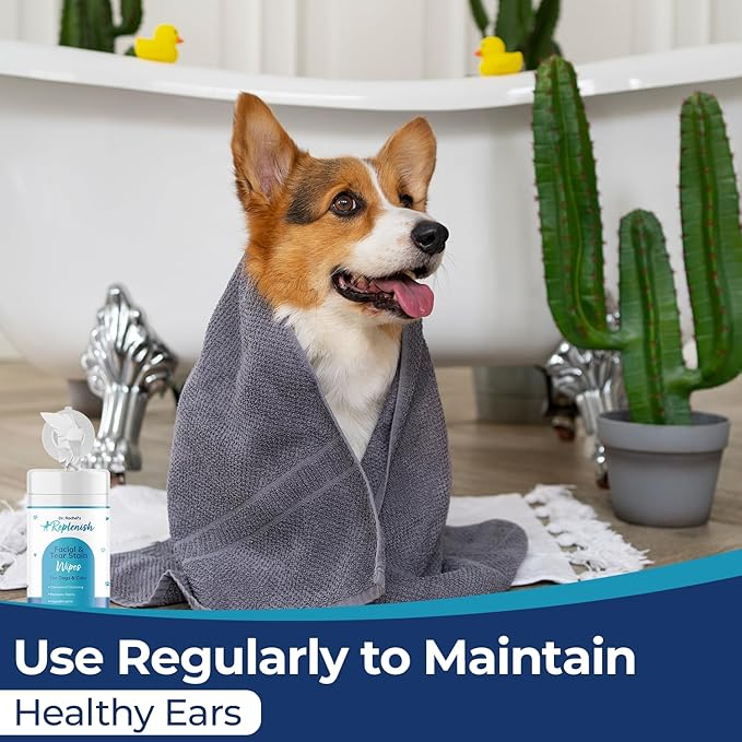 • GENTLE EAR CLEANSING: Dr. Rachel's Replenish ear wipes for dogs are meticulously crafted to be your pet's go-to solution for gentle and effective ear hygiene. These alcohol-free, non-irritating wipes are specifically formulated to proactively prevent harmful activity while providing a gentle cleanse, delicate drying, and ear canal acidification. They excel at eliminating unpleasant odors, leaving your pet's ears fresh and comfortable.