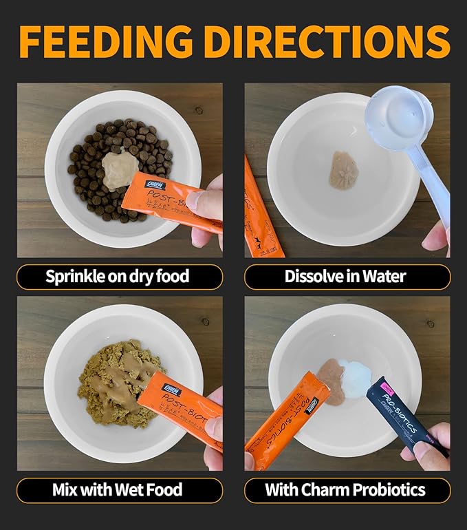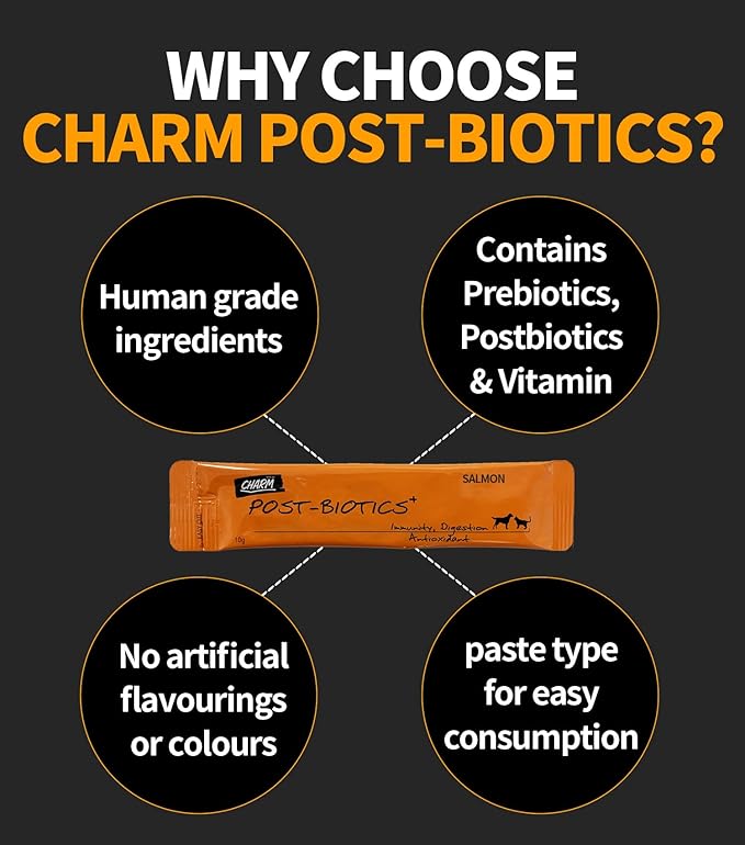 • THE ULTIMATE ALL-IN-ONE SACHET – Our Charm supplements are formulated with multivitamins and fermented probiotics (postbiotics) to support digestive health, strong immunity, and much more! They contain prebiotics, which provide a good food source for healthy gut bacteria. Plus, they contain three powerful antioxidants. Each sachet is designed for easy consumption. Its high moisture content ensures your pets are kept hydrated. Suitable for all small and large dogs or cats from 3 months of age.