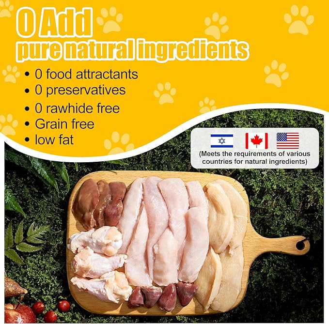 • [Natural ingredients]All snacks are handmade from 100% natural chicken breast and genuine cod from the Atlantic, without artificial ingredients, fillers, or preservatives. To ensure the maximum safety of your furry family members. Completely free of grains.