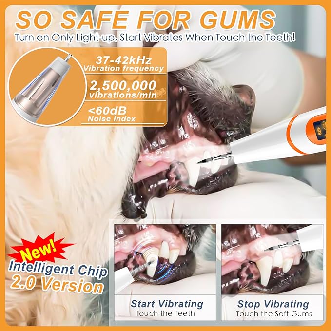 • PROTECTING YOUR PET’S ORAL HEALTH - Uses intelligent 42kHz ultrasonic high-frequency vibration technology to effectively remove dental calculus, plaque, and tartar on pet teeth, delivering an immediate teeth-cleaning effect.