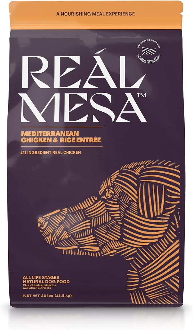 Real Mesa Premium Dry Dog Food - High Protein, Chef Curated Adult Dog Nutrition, Mediterranean Chicken & Rice Entrée (26lbs)
