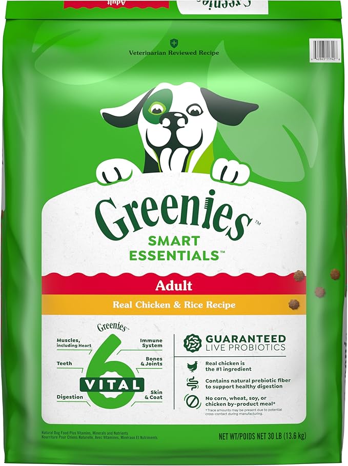 • Contains one (1) 30 lb. Bag of Greenies Smart Essentials Adult High Protein Dry Dog Food Real Chicken & Rice Recipe