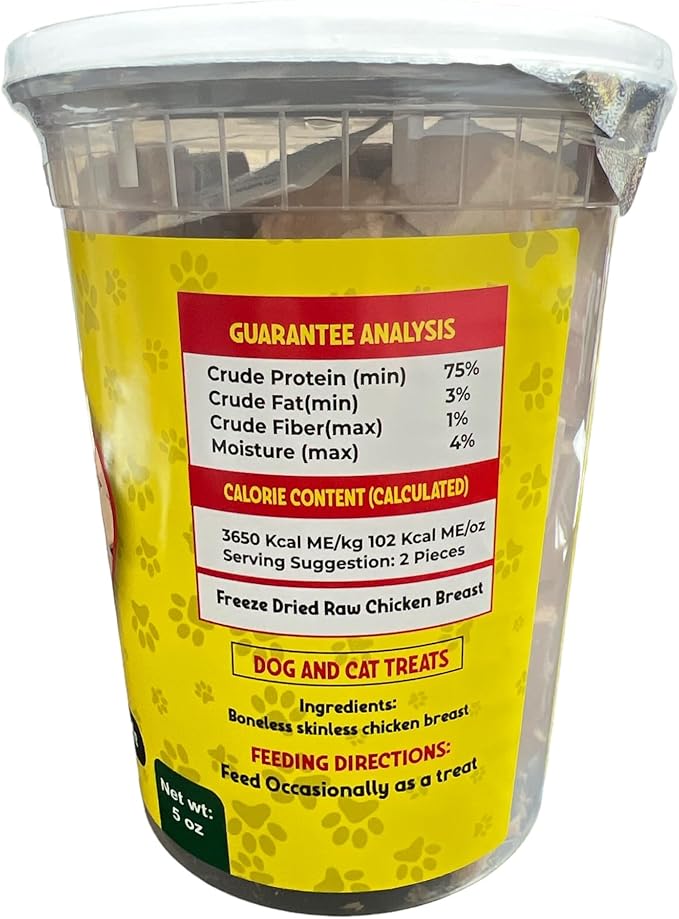 Freeze-Dried Raw Chicken Breast for Cats & Dogs(5 OZ), Delicious and Healthy Freeze-Dried Chicken Breast- Made in The USA - Perfect for Dog and Cat Training Treats, Snacks