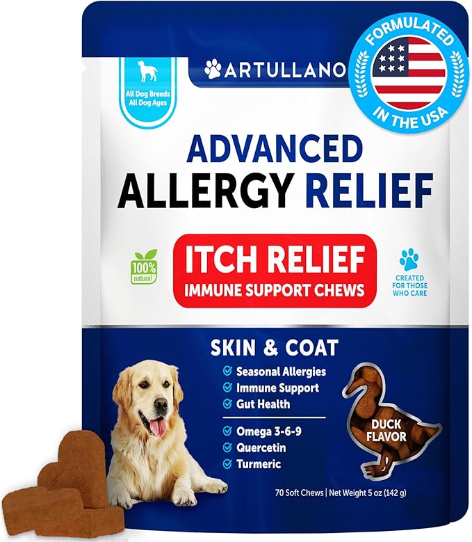 Dog Allergy Relief Chews - Dog Itching Skin Relief Treatment Pills - Itchy and Paw Licking - Anti-Itch Support - Immune Skin & Coat Supplement - Dry Skin and Hot Spots - 70 Treats