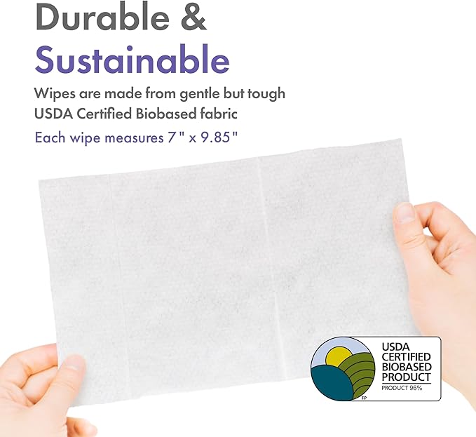 • Consciously Cleans - These durable and sustainable plant-based wipes measure 6.7 x 4.7 inches, allowing you to quickly clean and deodorize your entire pet. No water or rinsing required so it's easy for you and good for the planet.