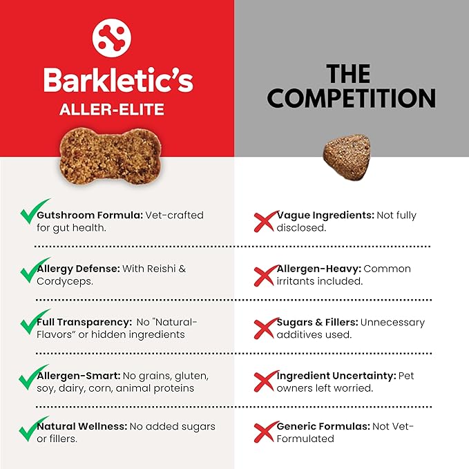 • Free from Top Allergy-Triggering Ingredients - Barkletic is dedicated to providing allergen-smart nutrition. Our Aller-Elite Probiotic Chews are made without common allergens, making them a safer choice for all dogs, even dogs with food sensitivities and allergies.