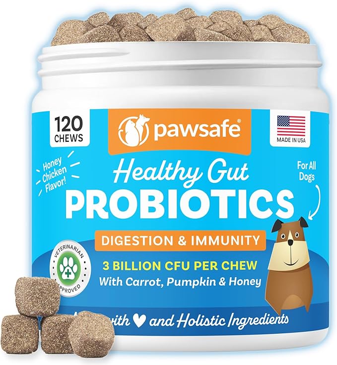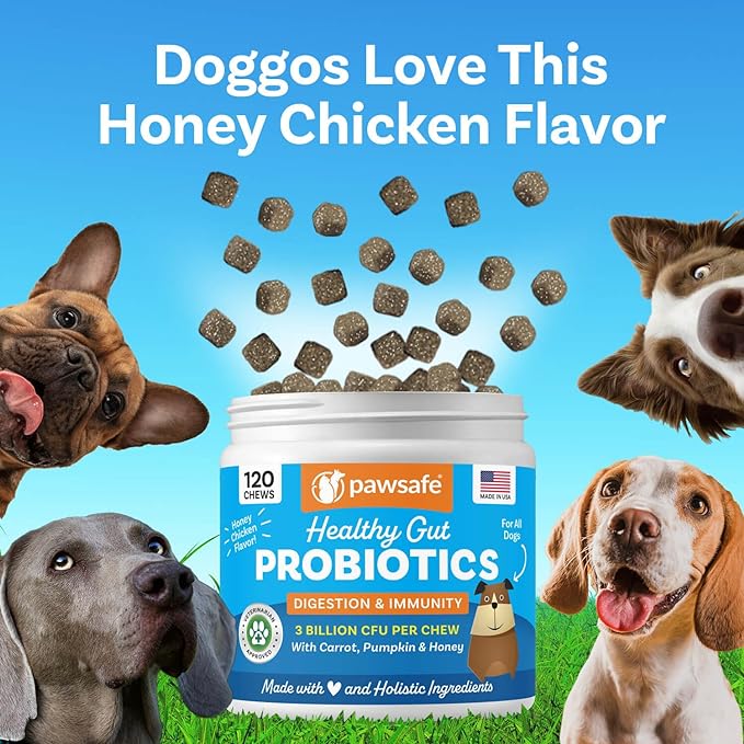 Dog Probiotics, Honey Chicken Flavor, 120 Soft Chews for Digestive & Gut Health, Immune Support Supplement, Gas Relief, Anti-Diarrhea, Helps with Allergies, Upset Stomachs, Yeast and Itchy Skin