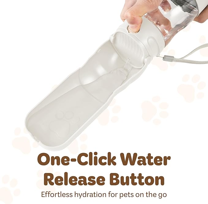 • No-Spills Drink. No more spills with our one-button operation. The leak proof design keeps this water bottle for dogs and cats neat and tidy. Press for water whenever your furry pets need a drink.