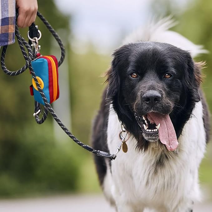 • Portable - This fashion color matching dog poop bag dispenser can be attached to any leash, harness or waist you might have. The straps will secure the bag on its place. An extra carabiner can be used to clip onto a leash loop, hold keys or carry a training clicker.