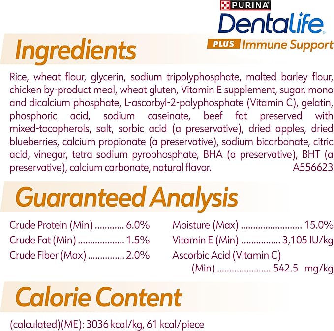 • Purina DentaLife dog treats are a VOHC (Veterinary Oral Health Council) Accepted product – reduces tartar buildup