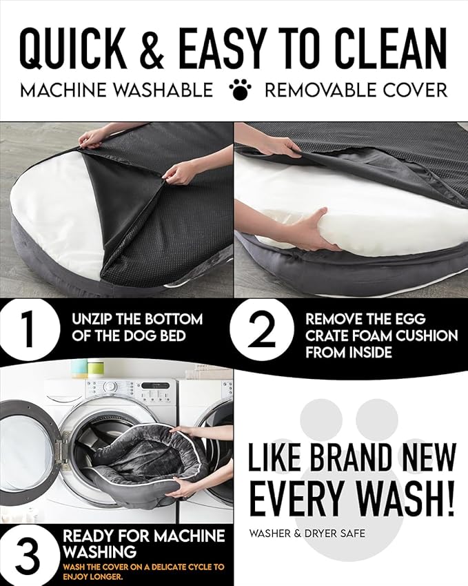 • Convenient Removable Cover: Our beds come with a removable zippered cover, making it effortless to remove and machine wash. The cover is constructed from durable and scratch-resistant fabric, ensuring longevity even with active or mischievous dogs. Wash the cover on a delicate cycle to enjoy longer!
