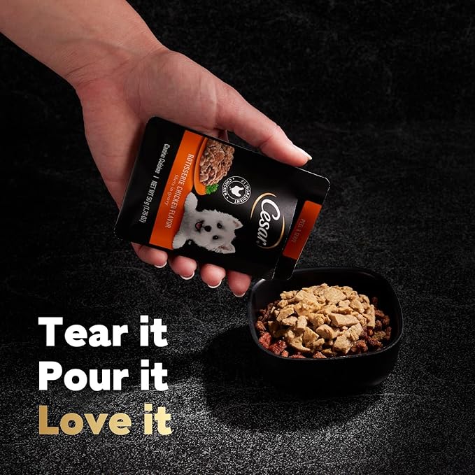 • Chicken is the #1 Ingredient: CESAR Rotisserie Chicken Flavor Mini-Pouches have chicken as the #1 ingredient so your dog gets a flavor they know and love