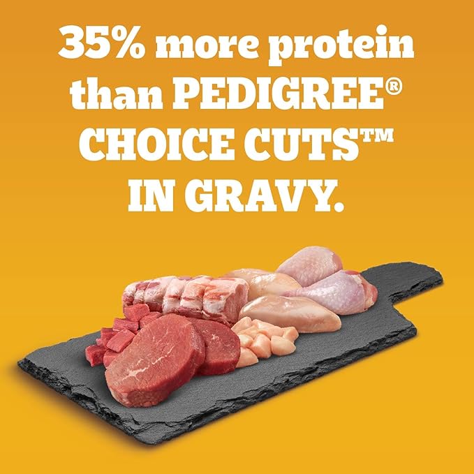 • High Protein: PEDIGREE HIGH PROTEIN Adult Soft Wet Dog Food contains 35% higher protein than PEDIGREE CHOICE CUTS IN GRAVY