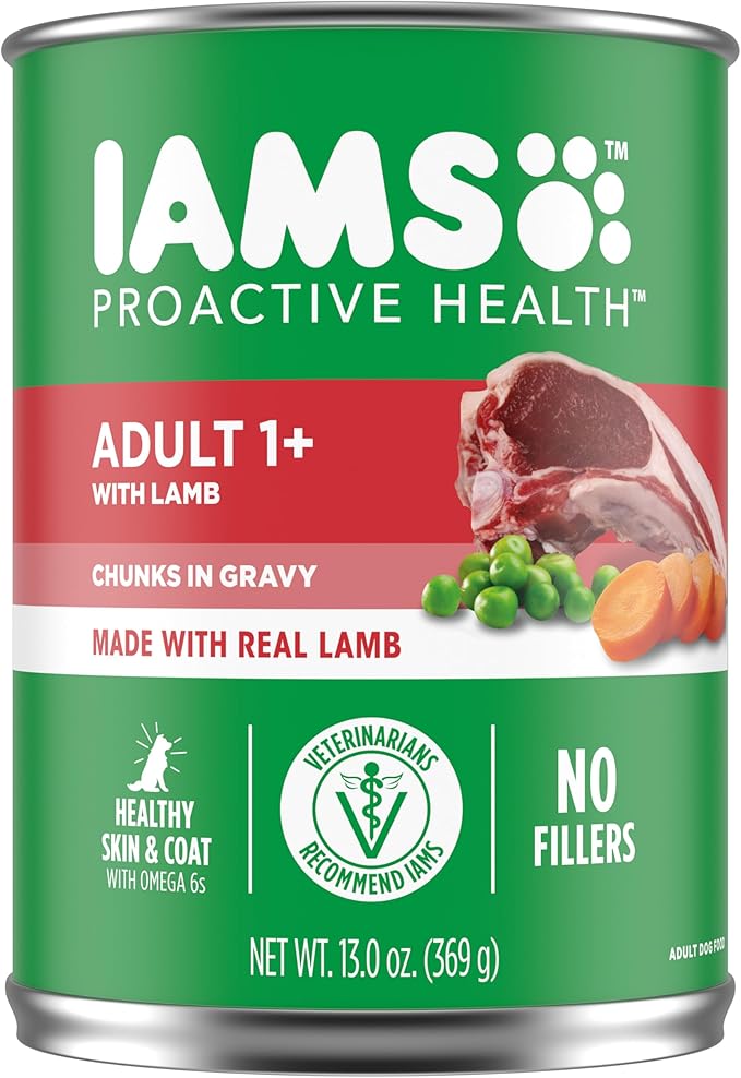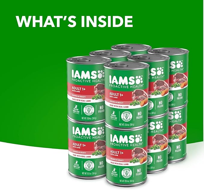 • 12-Pack: Contains twelve (12) 13 oz., cans of IAMS Wet Dog Food With Lamb Chunks In Gravy