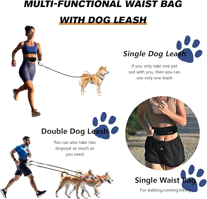 • 【Multi-function】1. It can be attached to the belt pack as a hands-free leash. 2. It can be used as a running belt alone. 3. The dog leash can be used separately.