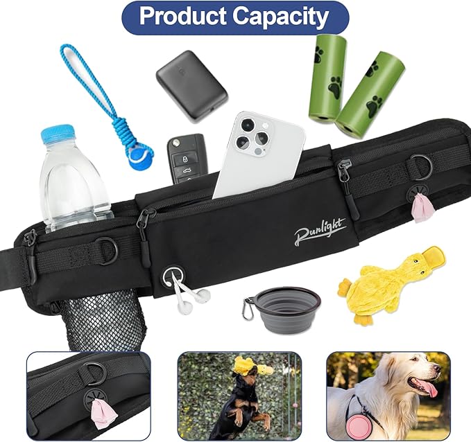 • 【Dog Walking Accessories】Our dog leash waist belt can store water bottles, snacks, cell phones and other essentials, and it also comes with a poop bag dispenser to meet your needs on the go.