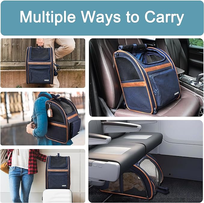 JESPET & GOOPAWS Pet Carrier Backpack for Dogs and Cats, Collapsible with Breathable Mesh Dog Backpack, for Hiking Travel Camping Outdoor Hold Pets Up to 25 Lbs (Navy Blue)