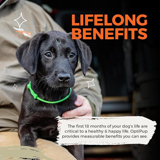 • LIFELONG BENEFITS – The first 18 months of your puppy's life are some of the most critical to ensuring their have the foundation to thrive throughout their life. OptiPup's healthy growth formula helps ensure they have all the nutrients they need to maximize their potential!