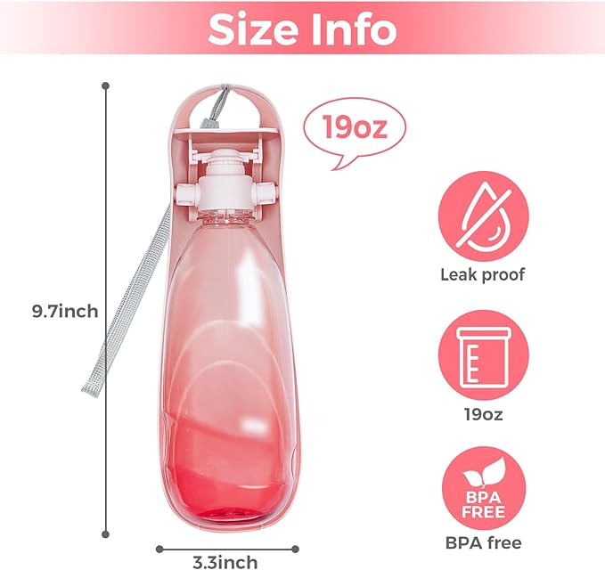 • 【Large Capacity】:19oz volume, enough water for your dog or cat especially during travel, trekking, hiking and some other ourdoor actions. The travel dog water bottle is your best companion for pets!