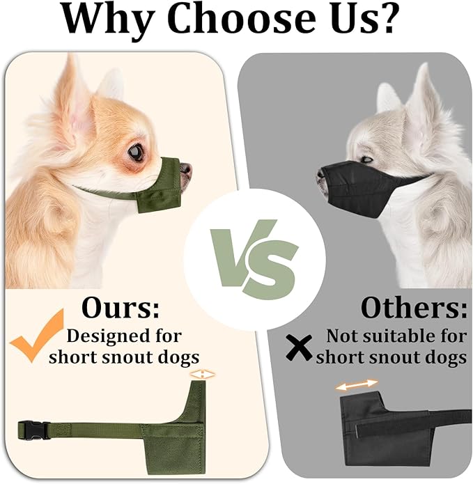 Mayerzon Short Snout Dog Muzzle, Small Muzzle for Chihuahua Shih Tzu American Bully Boxer Puppy, Soft Fabric Muzzles for Grooming Vet Visits, Prevent Biting Chewing Fighting