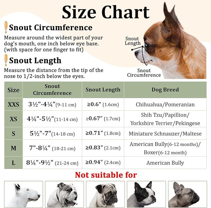 • Snug Fit for Medium Short Snout Dog: Muzzle for medium-sized tailored dogs with short snouts (7-8.25" in circumference). Perfect for breeds like American Bully and Boxer puppies (6-12 months), ensuring American bully muzzle fit is comfy on your dog's nose bridge, and won't sort of push into your dog’s eyes in every wear.
