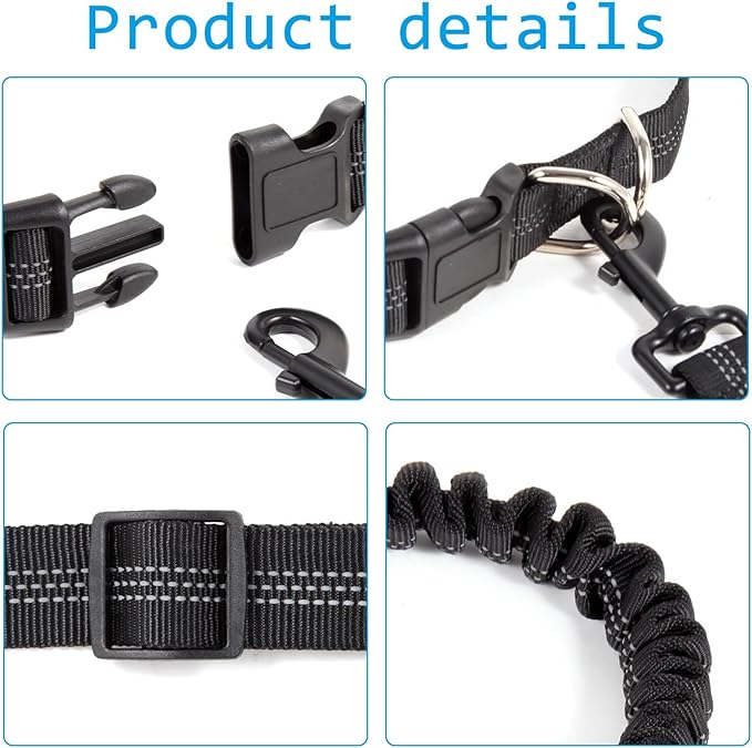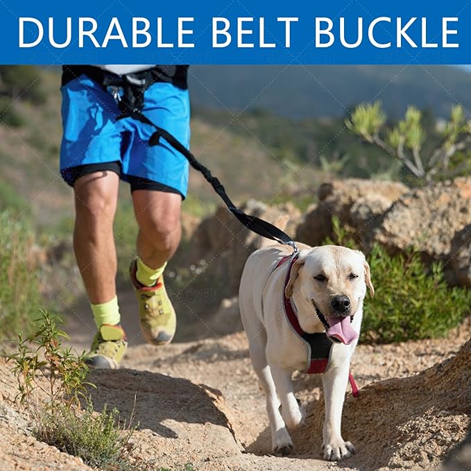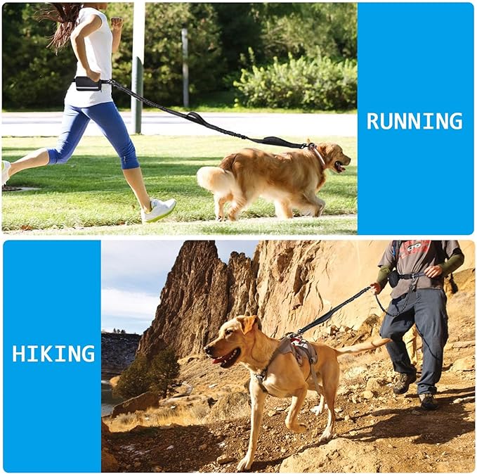 Hands Free Dog Leash with Zipper Pouch, Dual Padded Handles and Durable Bungee for Walking, Jogging and Running Your Dog, Waist Belt Dog Leash, Reflective Running Traction (Black)