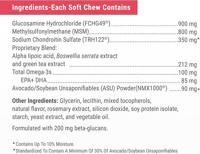 • Omega-3 Fatty Acids and Beta-Glucans: Each soft chew contains omega-3 fatty acids to help support skin and coat health and beta-glucans for immune support