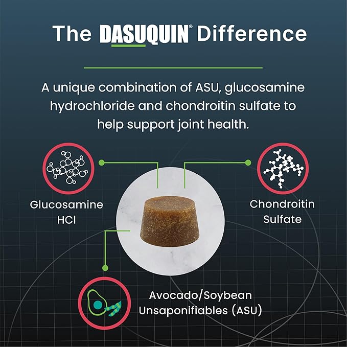 • Joint Health Support for Senior Dogs: Dasuquin, the #1 veterinarian recommended joint health supplement brand◆, contains avocado/soybean unsaponifiables (ASU), glucosamine hydrochloride, and sodium chondroitin sulfate that work better together to support joint health in dogs