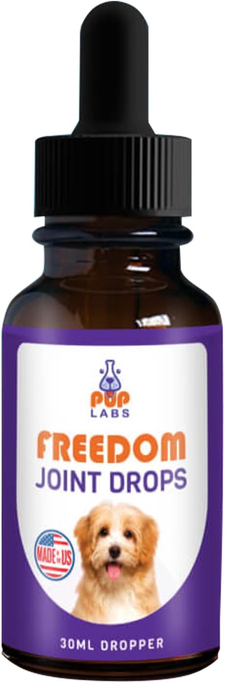 • Vet Reviewed and Approved Dog Joint Supplement - Joint pain and stiffness can prevent your dog from living the happy life they deserve. Freedom Joint Drops support their hip and joint health by aiding flexibility and strength, promoting cartilage development, and fighting swelling so your best friend can resume their active lifestyle!