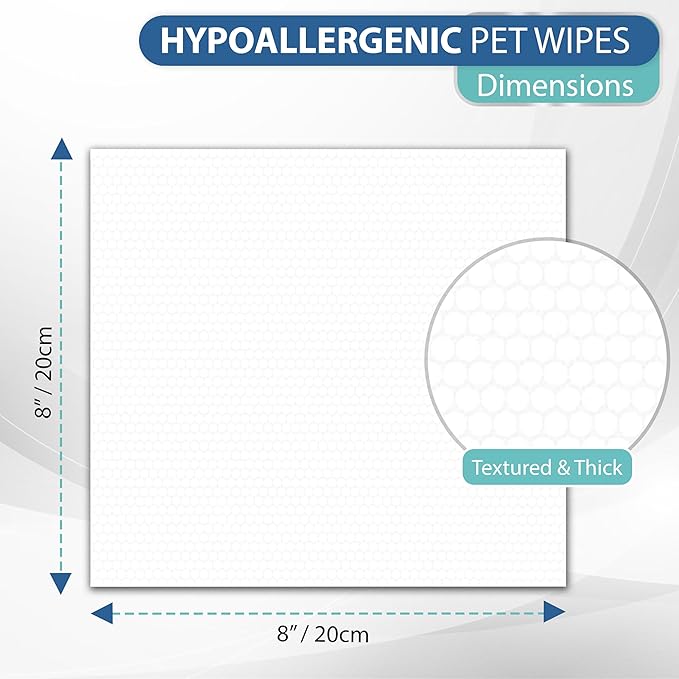 • SOFT AND FRAGRANCE-FREE: Treat your furry companion to the luxury of our 8" x 8" pet grooming wipes, providing an ultra-soft and gentle touch during each interaction. Enjoy the bliss of a cleaning experience without overwhelming scents. Our pet wipes for dogs are intentionally unscented and fragrance-free, ensuring a pleasant and comfortable grooming session for both you and your pet.