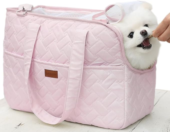 Cat Carrier Small Dog Handbag,Adult Cat/Puppy Carrier Bag Large Cat with Multiple Pockets,Breathable Mesh Soft Cushion,Traveling Pets Tote Purse Picnic Outdoor (Pink, Medium)