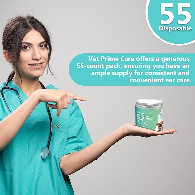 Pet Finger Wipes for Dogs Ear Relief, Aloe Vera & Eucalyptus Infusion, Pet Grooming Wipes, Remove Debris & Ear Wax, Soothe & Deodorize, 55-Count Pack.