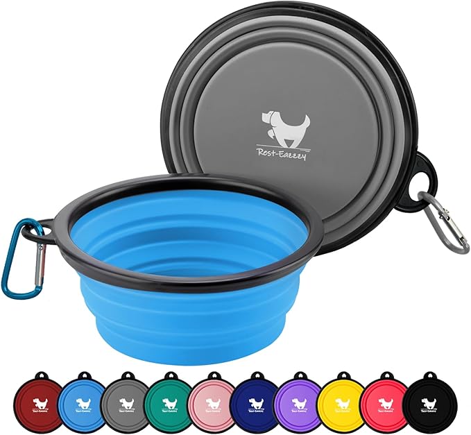 Rest-Eazzzy Large Collapsible Dog Bowls 1000 ml, 2-Pack Dog Portable Water Bowl for Dogs Cats Pet Foldable Feeding Watering Dish for Traveling Camping Walking with 2 Carabiners, BPA Free