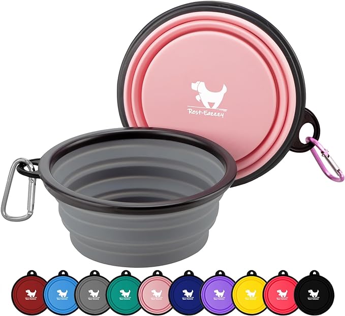 Rest-Eazzzy Large Collapsible Dog Bowls 1000 ml, 2-Pack Dog Portable Water Bowl for Dogs Cats Pet Foldable Feeding Watering Dish for Traveling Camping Walking with 2 Carabiners, BPA Free