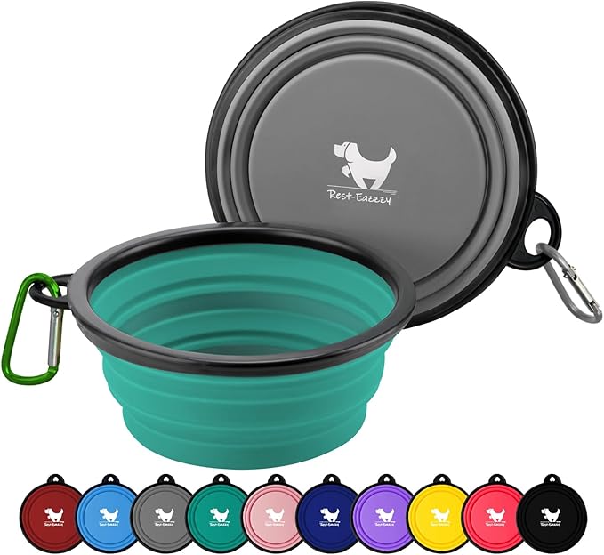 Rest-Eazzzy Large Collapsible Dog Bowls 1000 ml, 2-Pack Dog Portable Water Bowl for Dogs Cats Pet Foldable Feeding Watering Dish for Traveling Camping Walking with 2 Carabiners, BPA Free
