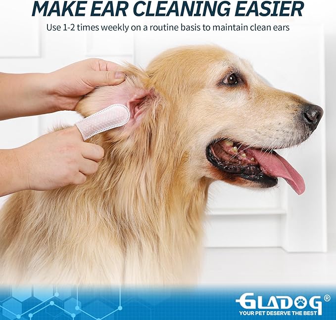 GLADOG Dog Ear Cleaner Finger Wipes, Ear Finger Wipes for Dogs Cats, Gently Removes Dirt & Odor, Dissolves Wax Build-Up, Easy to Use, Ear Cleaning Finger Wipes for Dogs, Natural Ingredients - 55 Count