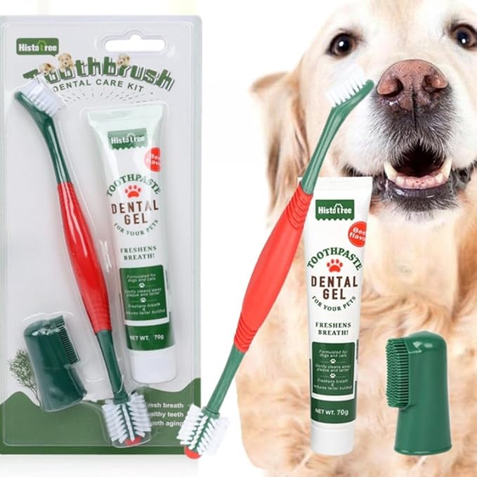• Three in One Pet Oral Care Set: Our pet care set includes a pet toothpaste, a double headed toothbrush for cleaning teeth, and a finger toothbrush for cleaning difficult to reach pet mouths, preparing everything your furry friends need to take care of their oral health