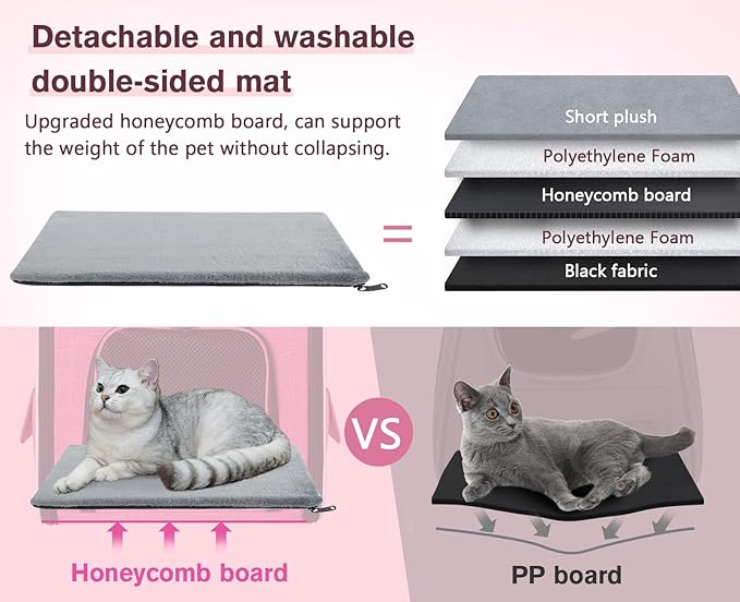 • 🐾 【 GREAT VENTILATION & COMFORT 】: Comes with 4-side breathable mesh windows, giving plenty of air for pets. Makes it easy for you to observe the movement of your pets while they are enjoying the scenery outside. The pet backpack carrier offers multiple ways to let your pet in and out with ease. To enhance comfort, the pet cushion is placed inside the bag's bottom and has a removable, washable cover. This ensures your furry friend has a perfect spot to rest while on the go.