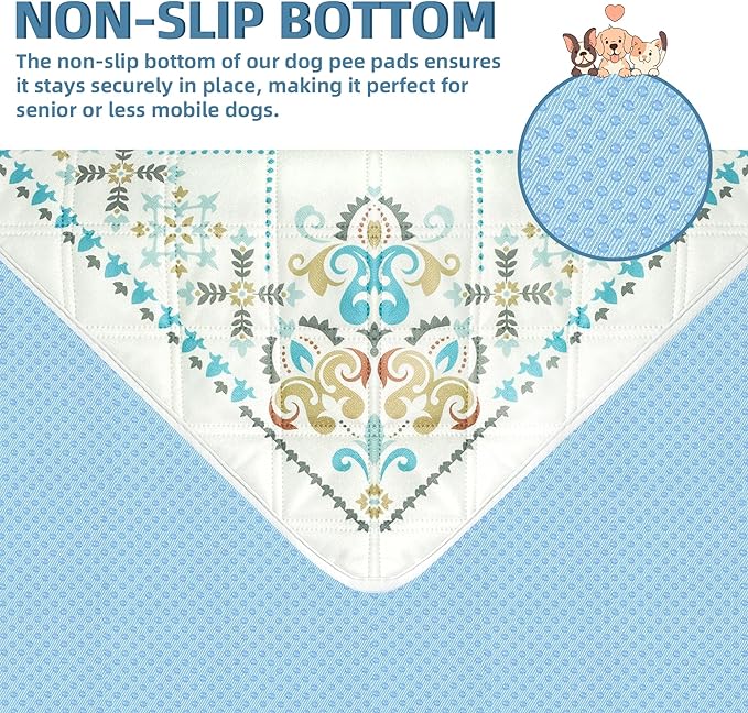 • 🐕Leak-proof Urine & Waterproof: Our washable dog pee pads feature a soft fabric that absorbs a significant amount of urine efficiently, meanwhile prevent odors and maintain a fresh-smelling in home. The high-quality waterproof TPU material guarantees urine not penetrate beyond the washable puppy pads, providing peace of mind and protecting your wood floors and carpets from accidents and mess. The reusable pee pads have exquisite patterns to add stylishly while protecting floors and furniture.