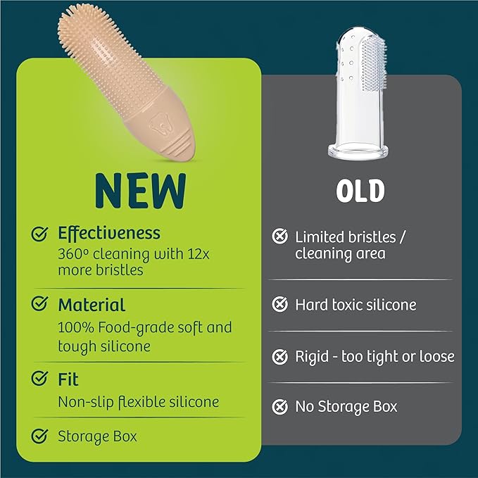 • [GENTLE ON THE TEETH] Silicone bristles are softer than traditional bristles, but abrasive enough to remove plaque. The gentle nature of fingerbrushes tend to be more accepted by pets.