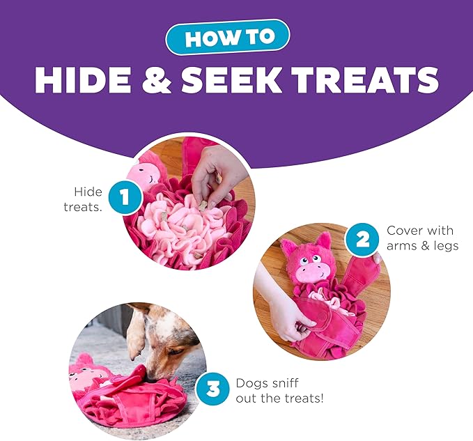 • A snuffle mat for dogs and a plush dog toy combine to create the perfect interactive dog puzzle for your furry best friend