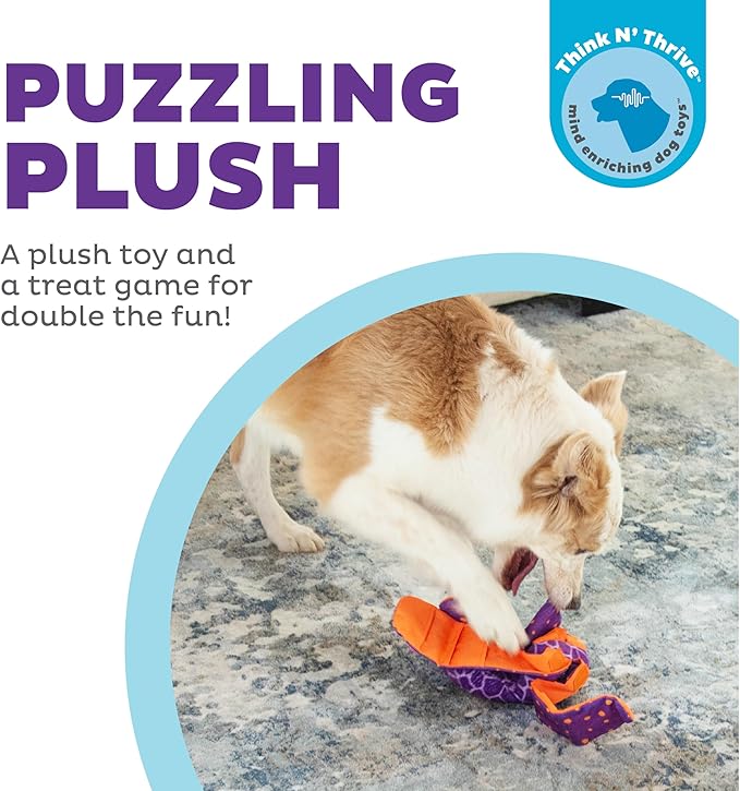 • A plush dog toy and treat puzzle toy combine to create the perfect dog puzzle for your furry best friend
