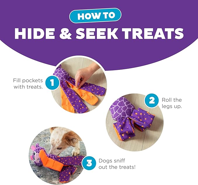 Outward Hound Nina Ottosson Silly Legz Interactive Plush Dog Puzzle Dog Enrichment Toys, Plush, Floppy, Long, Giraffe, Purple