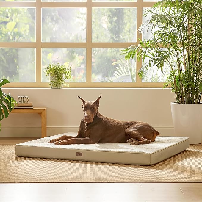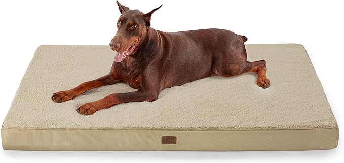 Bedsure Jumbo Dog Bed for Large Dogs - XXL Orthopedic Waterproof Dog Beds with Removable Washable Cover, Egg Crate Foam Pet Bed MatKhaki