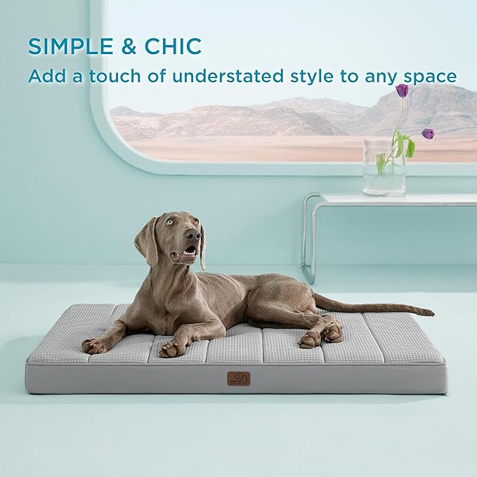 Bedsure Cooling Gel Foam Dog Bed for Large Dogs, Waterproof Orthopedic Egg Foam Dog Bed for Outdoor, Summer Comfort Pet Mats for Crate with Washable Cover(44"x32", Grey)