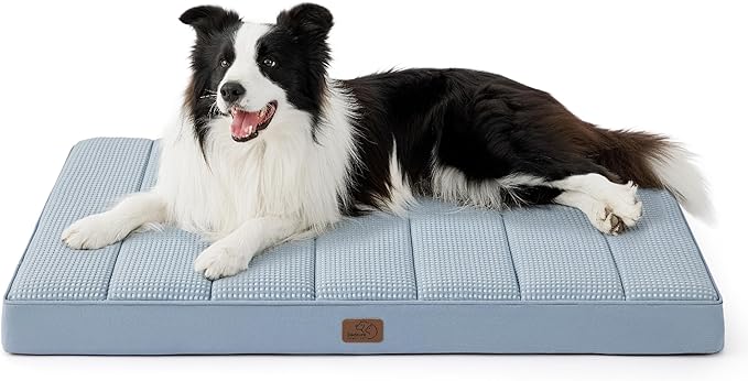 Bedsure Cooling Gel Foam Dog Bed for Large Dogs, Waterproof Orthopedic Egg Foam Dog Bed for Outdoor, Summer Comfort Pet Mats for Crate with Washable Cover(36"x27", Blue)