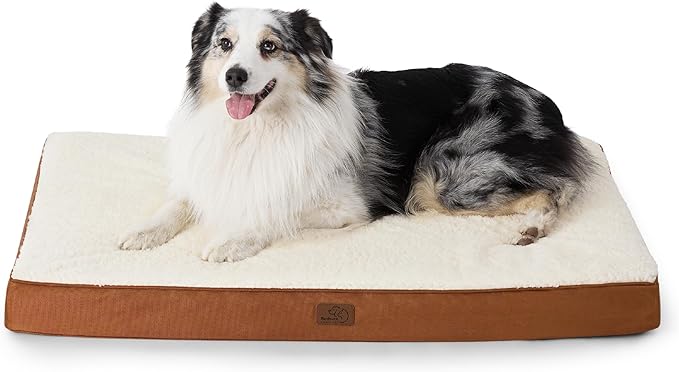 Bedsure Extra Large Dog Crate Bed - Big Orthopedic Waterproof Dog Beds with Removable Washable Cover for Large Dogs, Egg Crate Foam Pet Bed MatDark Khaki