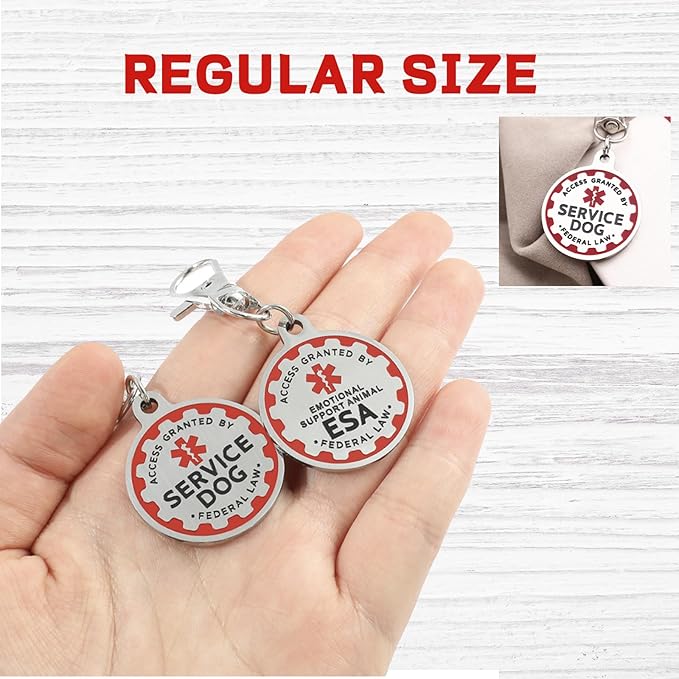Service Dog Tag Service Dog ID Tag Engraved Stainless Steel Enameled Regular Emotional Support Dog Animal Tags for Large Dogs Cats Collars Vests Harnesses Essential Name Badge