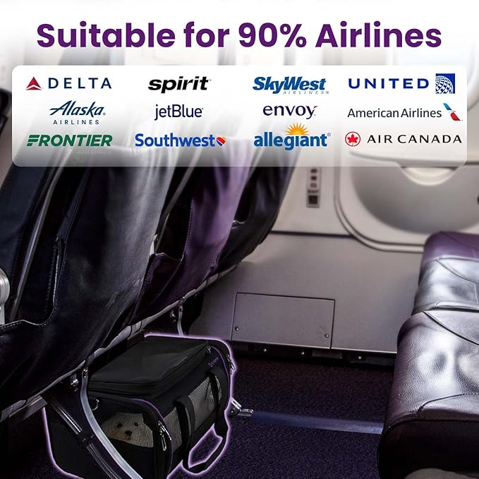 • Versatile and Secure: Whether you're flying with Air Canada, JetBlue, or Southwest Airlines, our carrier is your pet's perfect travel companion. The anti-escape rope and durable zippers keep your pet safe, while the stylish design ensures they travel in style.